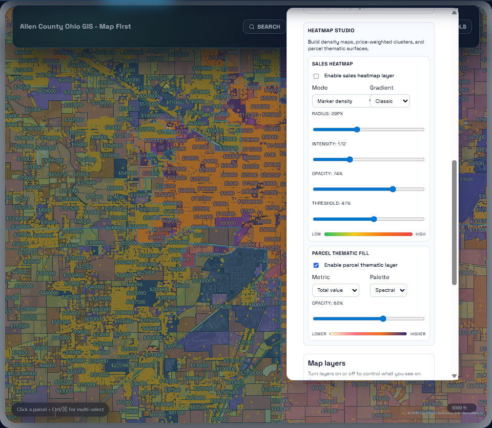 Heatmap, zoning, and value overlays